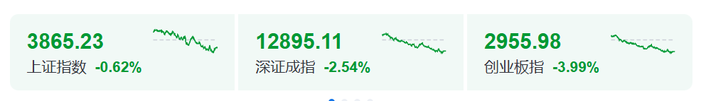 A股方面,创业板指午后跌超4%。截至收盘, 沪指跌0.62%,深成指跌2.54%,创业板指跌3.99%。