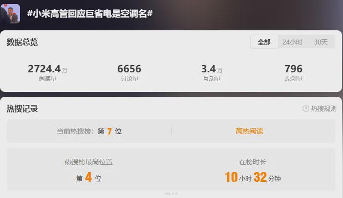 而相关的话题,也是时常冲上热搜,比如今天的一个热搜话题,小米巨省电空调是名称……