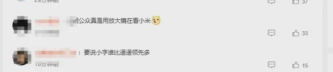 但尽管有顶流站台,但针对小米的“小字”讨伐,依然在持续加大火力。这从如今的现状也能看出,比如,现在只要小米涉及到的宣传,评论区总会出现“有没有小字”的评论,甚至小米高管相关的社交媒体发文,评论区都会跳出“有没有小字”的评论。